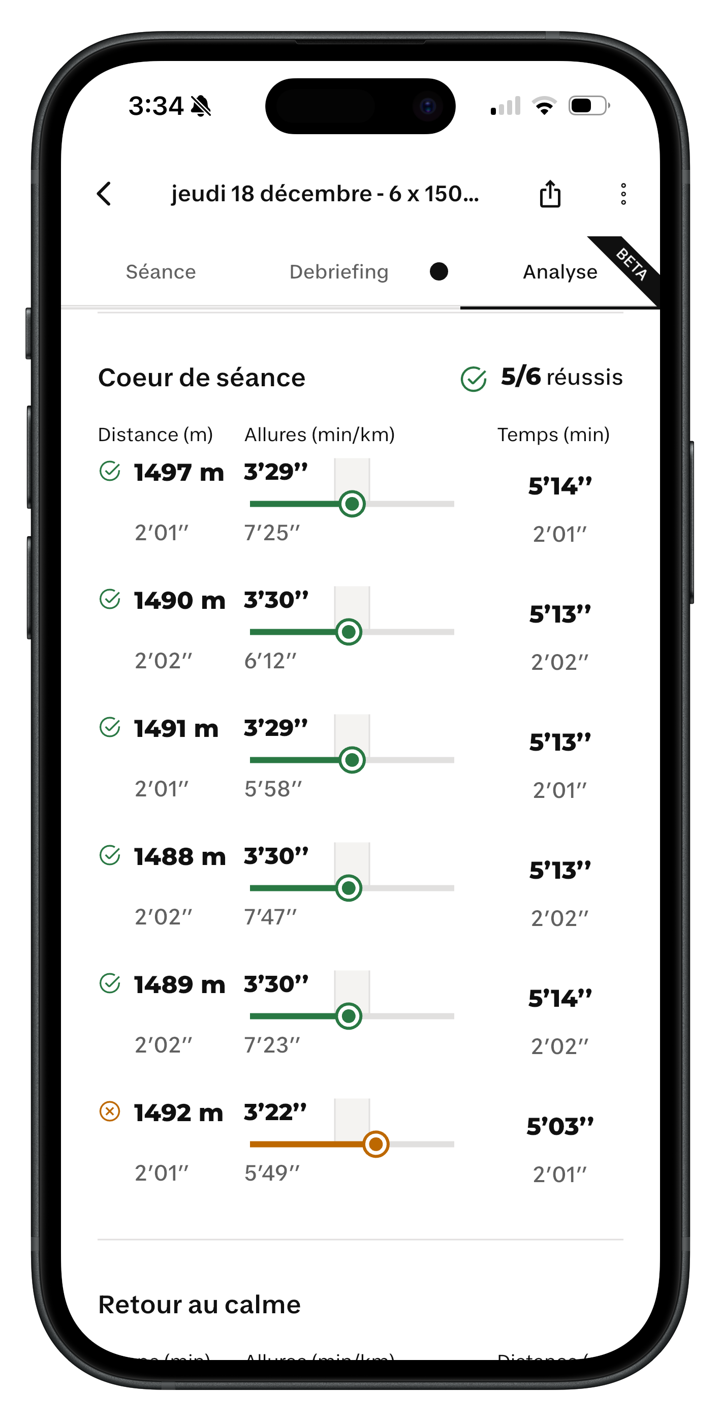 Pas d'inquiétude: ça n'impacte pas la suite de ton programme d'entraînement. Et en cas de score incohérent, tu peux désactiver l'analyse pour une séance qui te parait mal évaluée.